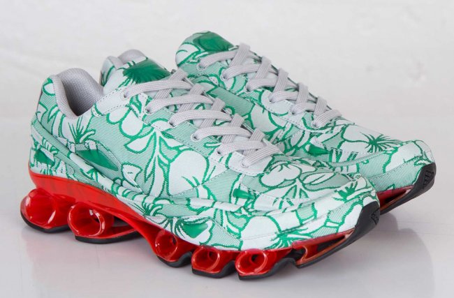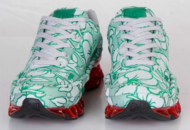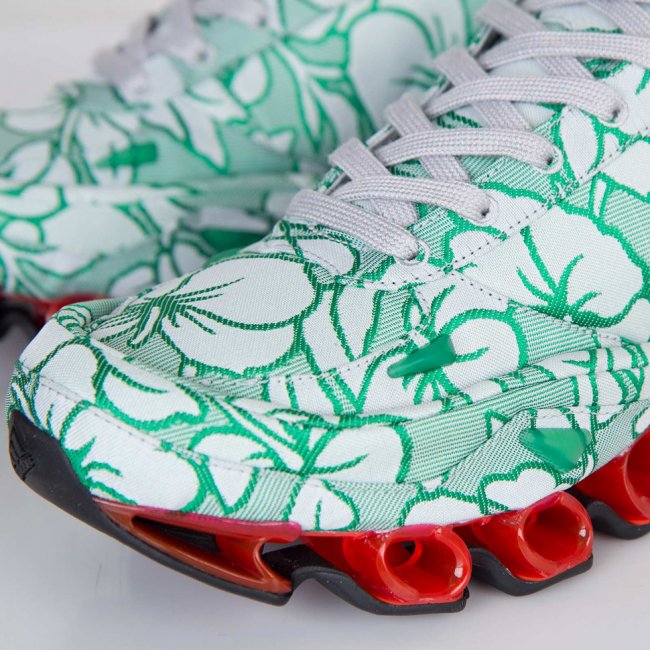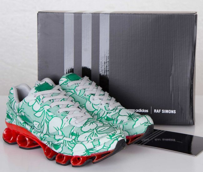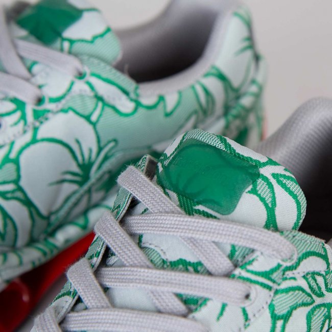 比利时著名时尚设计师Raf Simons于近日携手adidas推出全新Raf Simons x adidas Bounce“Floral Green”鞋款。Raf Simons选用清新简洁的白绿花卉图案打造鞋身,搭配红色全掌Bounce中底缓震科技,红色与绿色形成强烈对比。再辅以白色内衬及黑色橡胶大底,令鞋款整体极具特色。据悉这款Raf Simons x adidas Bounce“Floral Green”将于近日正式发售,售价:299美元。