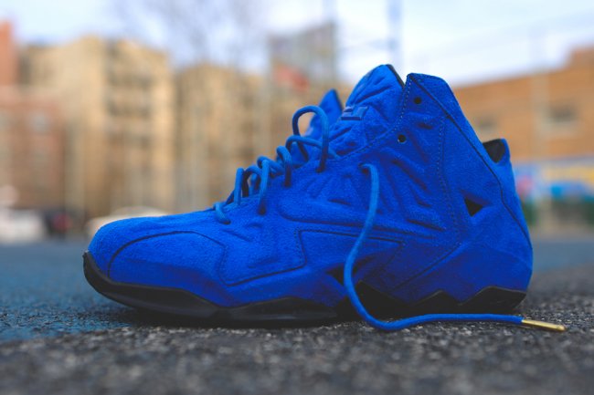 NNike LeBron XI EXT系列率先登场的将是这款“Blue Suede”配色,富有质感的蓝色麂皮打造鞋身,搭配黑色橡胶大底及皮革内衬与鞋舌,令原本拥有强悍线条的Nike LeBron XI呈现出全新的街头潮流感。Nike LeBron XI EXT “Blue Suede”将优先于4月10日在北美各大Nike Sportswear指定店铺上市,货号:656274-440,售价:200美元。