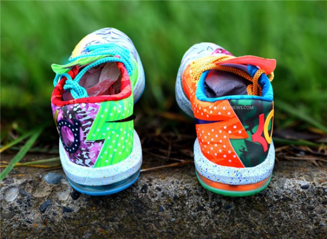 "What The KD 6" 鞋款应该不是近期唯一一个特殊版本的Nike KD 6鞋款,随着常规赛临近尾声,杜兰特很有可能包揽得分王和MVP两个头衔,如果真的能够获得这两个奖项,那么后续还会推出更限量或者更别致的配色。不过这些都是后话了,我们还是把目光集中到这款6月发售的鞋款上吧。 Nike What the KD 6 货号:669809-500 发售日期:2014年6月7日 发售价格:$150