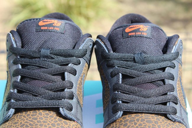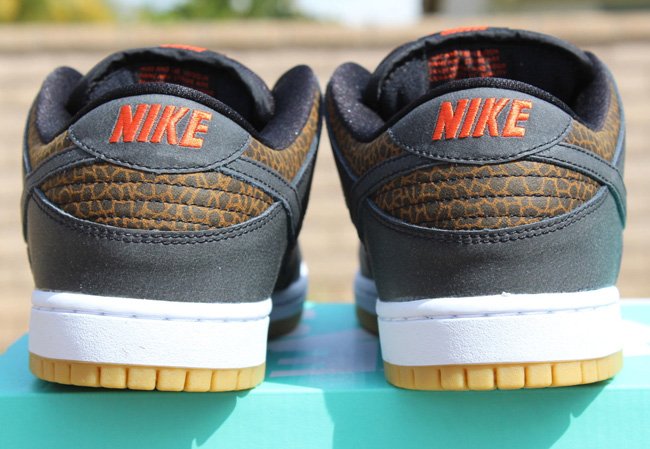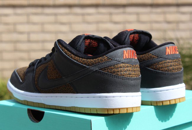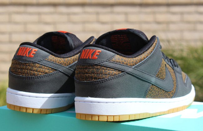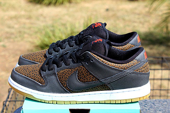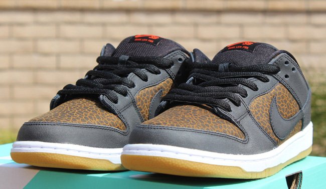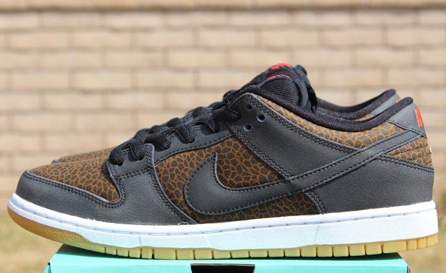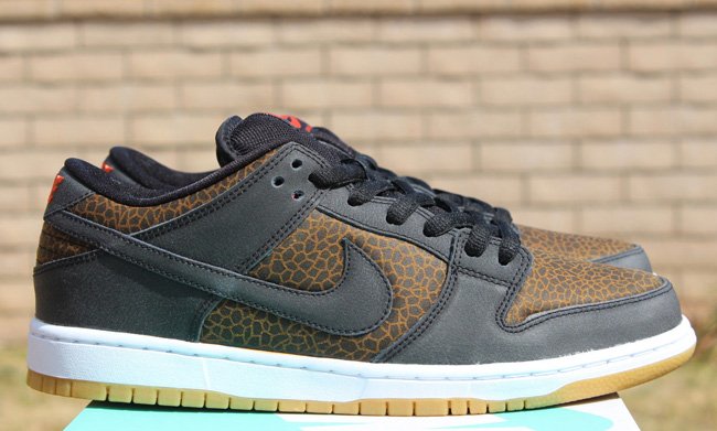 使用动物元素打造球鞋,我们已经屡见不鲜了。此次Nike SB就以来自非洲草原的长颈鹿为灵感打造了一款Nike SB Dunk Low “Giraffe”,大面积长颈鹿皮革纹路妆点鞋身,搭配深棕色皮革细节、内衬,生胶大底的加入则让鞋款瞬间变为一只活灵活现的长颈鹿。