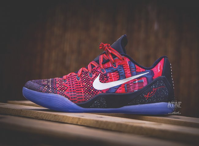 本周Nike Kobe 9 Elite Low HTM的突袭发售占尽话题版面,不过Kobe 9 EM也不会就此暗淡,全新配色艳丽登场。虽然不能像Flyknit那样呈现繁复精密的花纹,但工程网面材质却能表现更加完整且多样的图案,眼前这款以镭射红搭配黑曜石的新版本便在鞋面中隐藏了数字24。此款货号669630-604,现已在部分地区率先上架。