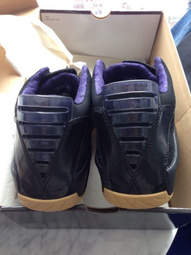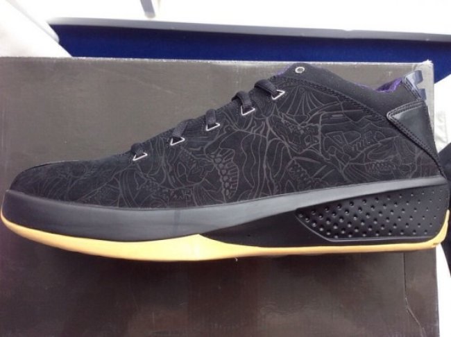 Air Jordan 20可谓Air Jordan系列周年庆中首双极富意义的里程碑式鞋款,而眼前这款从未曝光的Air Jordan 20 Low是为Mike Bibby专门打造。黑色鞋身布满系列回顾的球鞋暗纹装饰,Air Jordan 20特有的花色纹理以紫色点缀于内衬,鞋舌个人logo刺绣以及大底则以暗金色搭配。