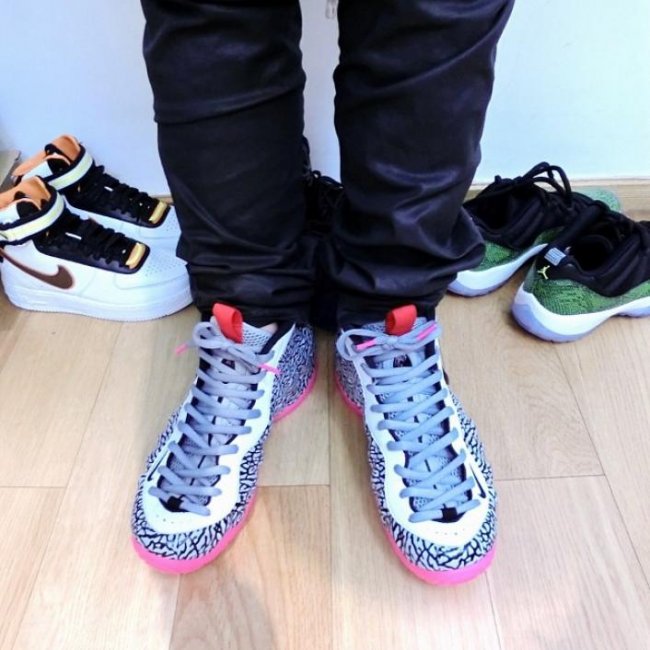 最近Nike Air Foamposite Pro颇为火爆,各款全新配色陆续曝光,热议焦点之一的“Yeezy”配色也将正式发售。不过近日网上又提前曝出“爆裂纹”配色Air Foamposite Pro的实物上脚照。灰色鞋身附着爆裂纹装饰,搭配灰色鞋舌、白色鞋眼/鞋领以及黑色内衬,反差较大的红色以及粉色分别装饰于鞋舌拉环以及大底。