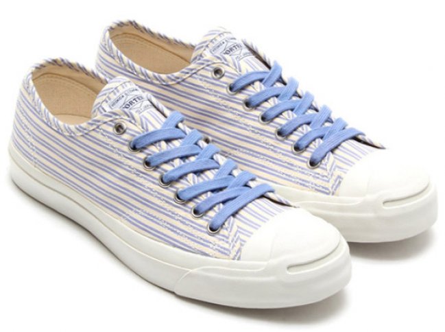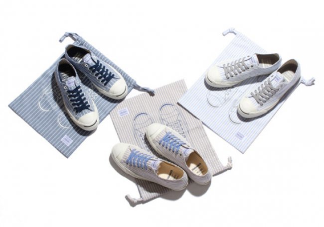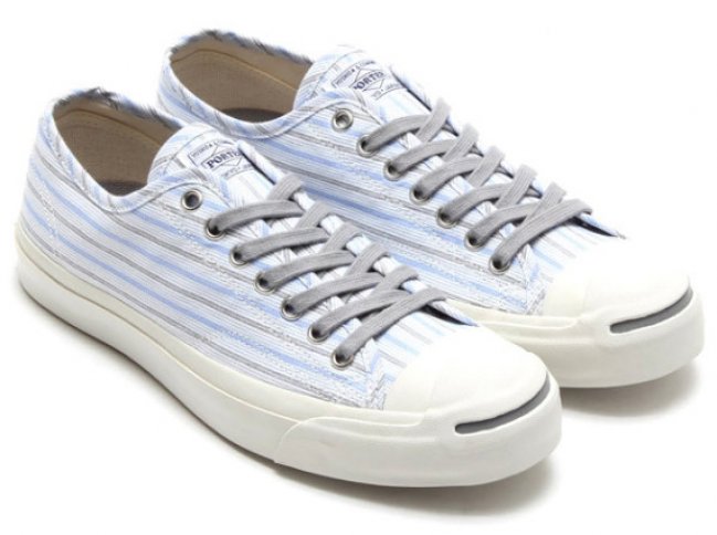 近日运动品牌 CONVERSE 别出心裁地邀请到了人气包袋品牌 Porter,为今年春夏季度推出了一款联名版本的 Jack Purcell “Pouch Pack” 系列。系列共有三款不同版本的 Jack Purcell,双方采用粗细不一的横条纹设计贯穿该系列,在配色上均以简洁的白蓝色为主基调,再搭载上白色橡胶大底以及金属鞋带孔,给人十分清新的视觉感受。据悉该系列将在5月份于日本指定店铺发售。