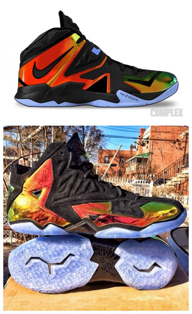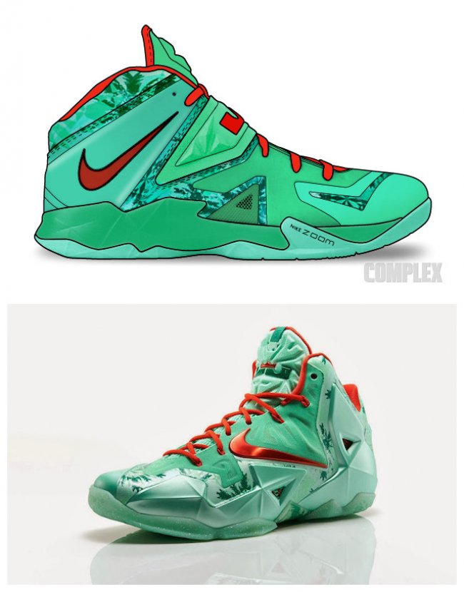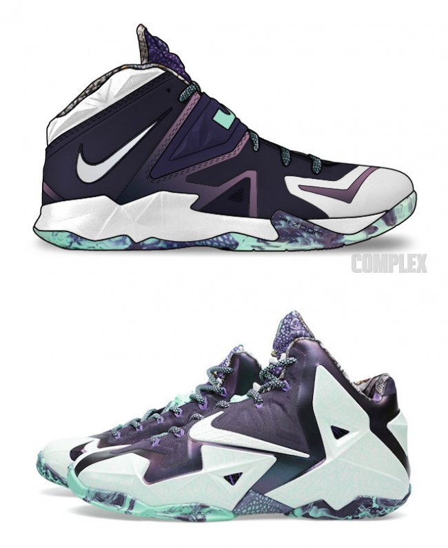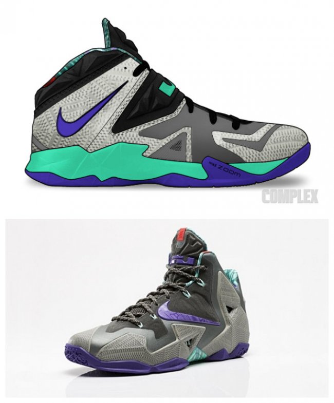 在刚刚结束的2013-2014NBA常规赛中,“小皇帝”LeBron James 曾多次舍弃自己的全新一代签名鞋Nike LeBron XI,选择穿着Nike Zoom Soldier VII。此次,美国知名网站Complex.com就以此灵感为发想,将Nike LeBron XI的人气配色通过PS手段使用在Nike Zoom Soldier VII之上,打造出令人耳目一新的效果图。PS:大家认为哪一双Nike Zoom Soldier VII使用了Nike LeBron XI的配色后,体现了最佳的效果呢?