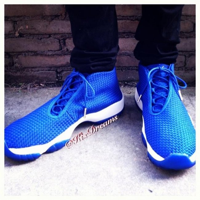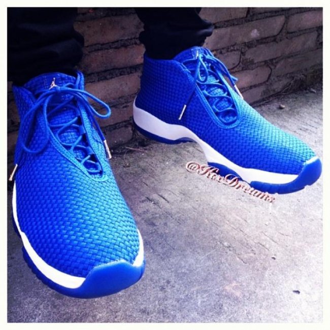 本周六全新花色Jordan Future将正式发售,而此前已有实物曝光于网络的蓝/白配色版本则再度曝出实物上脚效果。蓝色鞋身配以白色中底以及蓝色大底,若是喜欢色调简洁却又想要表现个性,这款Jordan Future会是一个不错的选择。