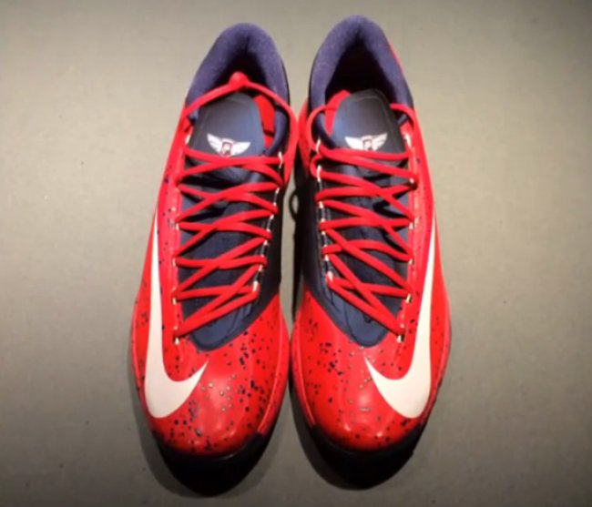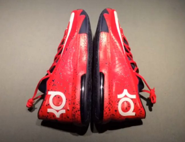 本赛季得分王、MVP最热门人选,就在我们等待这些荣耀以及纪念鞋款正式推出之时,网上又曝光一款神秘的Nike KD 6 PE。鞋身以红色为主色调,鞋面内侧、内衬以及大底搭配海军蓝,swoosh以及kd logo辅以白色,红色鞋面附有泼墨点缀,而鞋舌的神秘标志还尚未有详细介绍。