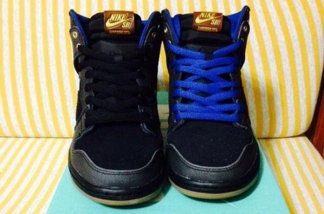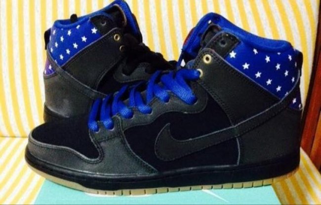 眼前这款全新Nike SB Dunk High之前已有实物曝光,黑色鞋身颇为低调,蓝色鞋领部分附有白色星星点缀呈现星条旗的错觉,鞋垫则真正以星条旗为灵感设计。亚洲部分地区已率先提前发售此款Nike SB Dunk High,鉴于近日《美国队长2》的上映,大家也可以将其称为“美国队长”配色。