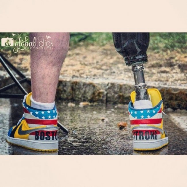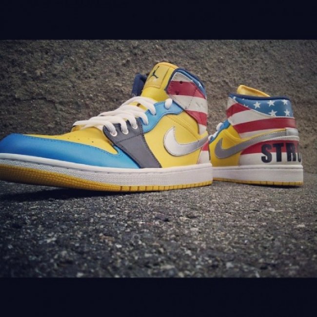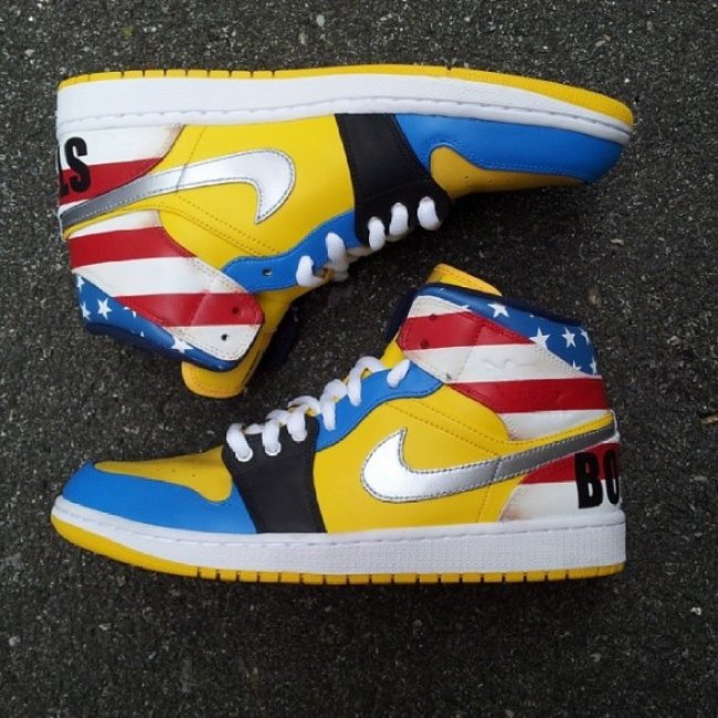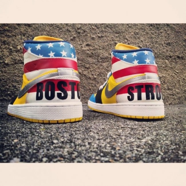 为纪念一年前的波士顿马拉松爆炸案,来自美国的球鞋定制师Bombing Victims特意于近日打造了一款Air Jordan 1 “Boston Strong”定制鞋款。 黄色鞋身融入美国星条旗元素,再辅以后跟黑色“BOSTON STRONG”字样,令鞋款直奔主题。值得一提的是,定制师还将鞋垫上印制有波士顿马拉松的标志性Logo。