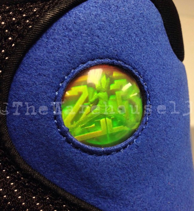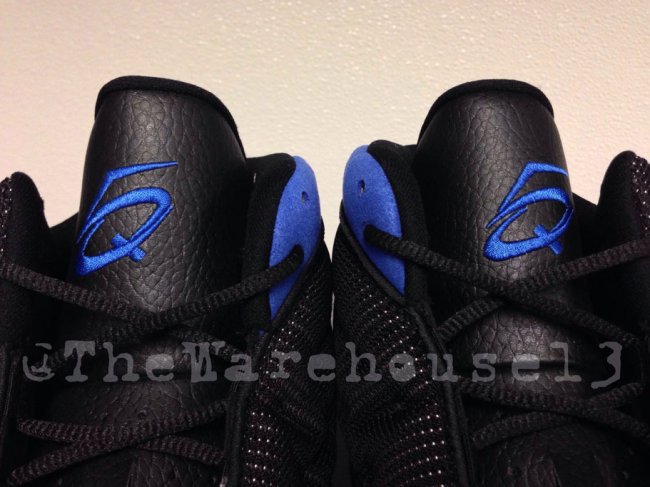 眼前这款未曾市售的Air Jordan 13是为2011-2012赛季效力于魔术队的Quentin Richardson特别打造。鞋款选用黑色织物以及皮革搭配皇家蓝色麂皮制作鞋身,鞋舌绣有其个人“Q5”logo,整体呈现客场色调主题。