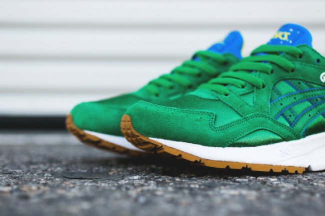 随着 2014 巴西世界杯的临近,各大运动品牌纷纷推出巴西题材的球鞋。这款 Asics Gel Lyte V “Brazil” 采用了辨识度极高的巴西国家配色,绿色的鞋面由麂皮和布料拼接而成,细节则采用蓝色和黄色点缀,整体效果清新而又抢眼。