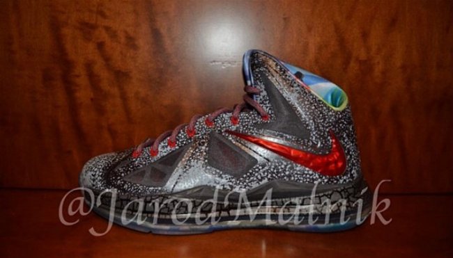 Nike LeBron系列已经发展至第十一双,但毫无疑问的是每年都有一定数量的样品版本被制作出来却从未曝光过,比如眼前这双至今才被披露的LeBron 10 PE。由球鞋收藏家Jarod Malnik曝出实物,鞋款鞋身以暗色调呈现,鞋面附有反光银色泼墨细节,中底辅以爆裂纹装饰,配上铬合金质感红色swoosh以及棱镜设计内衬/大底,整体风格极为特别。