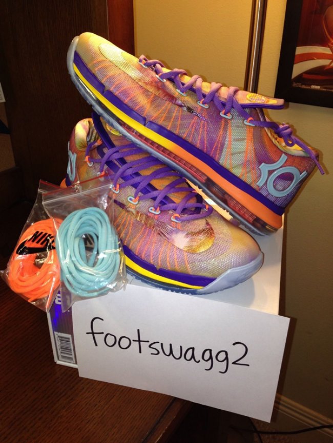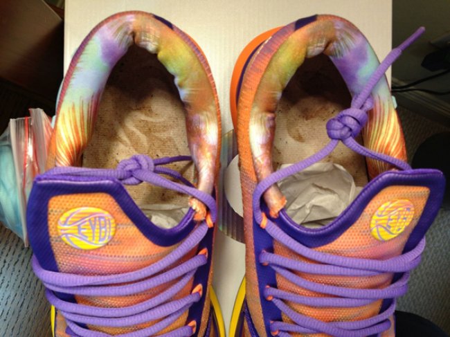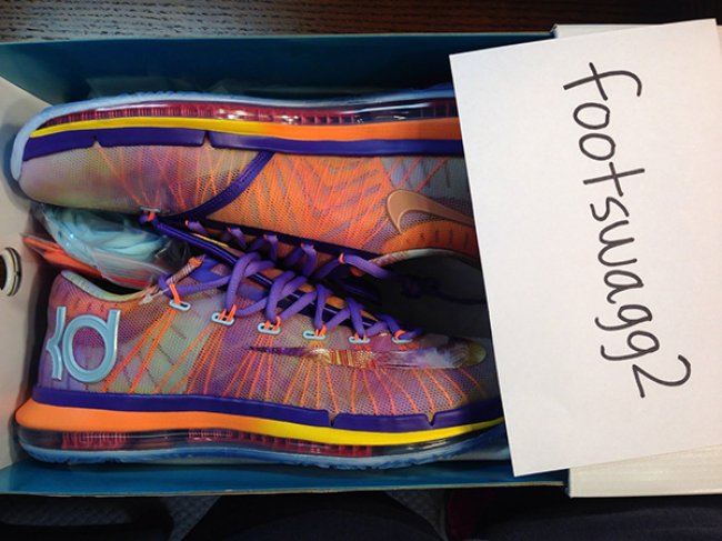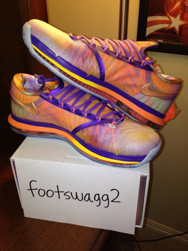 EYBL 是 Nike Basketball 举办的 Nike 青年精英篮球联赛,去年 Nike 就曾针对该赛事推出过一款 KD5 Elite “EYBL” 版本,此番,全新的 KD 6 Elite “EYBL” 也呼之欲出。相比于去年的版本,今年的 KD 6 Elite “EYBL” 更为花哨,鞋款选用紫橙色构成鞋身,中底部分则以橙黄色的渐变效果呈现,此外,类似花卉印花的内衬设计也是亮点之一。目前官方还没有给出任何关于这款鞋的市售消息,会不会上市也还有待确定。