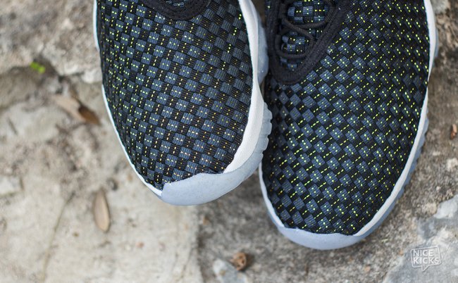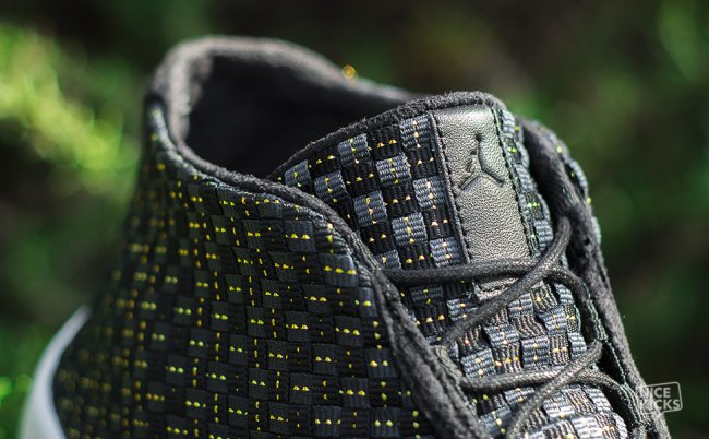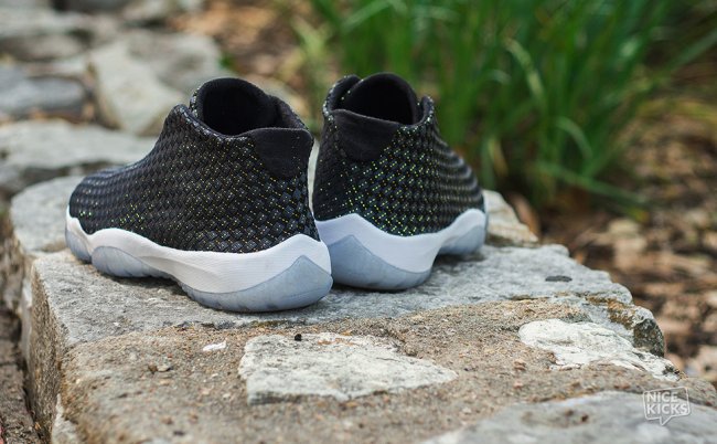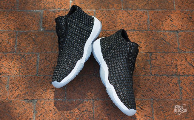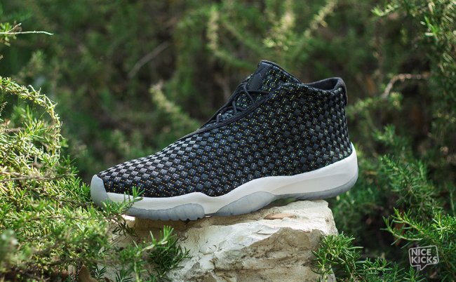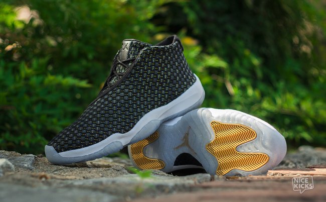 这款Jordan Future 经典赛PE 配色设计与首发的夜光配色类似,黑色编制鞋面搭配水晶大底。不同的是,黑色鞋面上加入了金线装饰,水晶大底内也加入了金粉细节和金色装饰,令鞋款变得“低调奢华上档次”。可惜的是,这款Jordan Future 经典赛PE仅赠送给参加2014年Jordan Brand经典赛的参赛选手和少量工作人员。