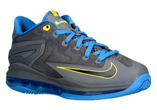 Nike推出全新GS尺码专属LeBron XI Low,鞋身Hyperfuse材质以暗灰色呈现,配以相片蓝色以及旅程黄色细节装饰,如此色调搭配令人想起曾经LeBron 8 V/2的Entourage配色。此款LeBron XI Low GS现已发售。