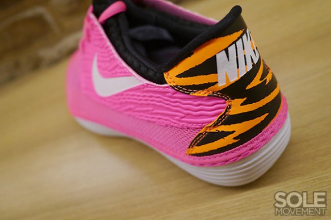 就如Nike Roshe Run一样,另一双夏季重推鞋款Nike Solarsoft Moccasin也有数不尽的配色,比如眼前这款新版本。鞋身以粉色作为主色调,搭配黑色内靴、白色大底/swoosh,并以类似虎纹的折型条纹装饰后跟。此款现已发售。