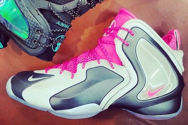 或许“投篮之星”套装太过难以入手,好在其中的全新鞋款Nike Lil' Penny Posite还有其他配色会推出,比如眼前这双。鞋身以白色搭配狼灰色,后跟部分呈现镜面效果,内衬/鞋舌/鞋带以及swoosh配以粉色装饰,略有“Think Pink”的主题风格。此款货号630999-001。