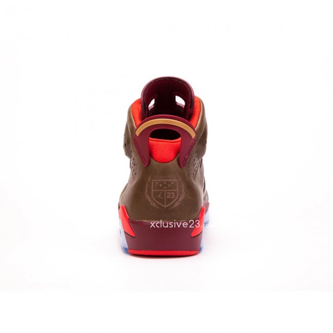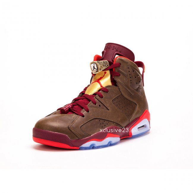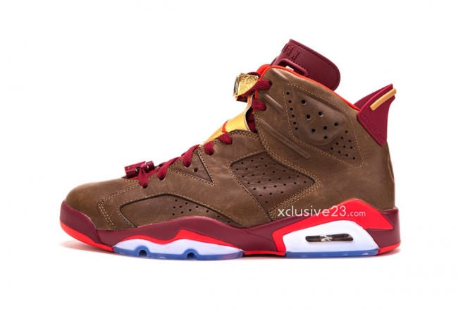 这款为庆祝乔丹首冠23周年,以冠军雪茄为设计灵感打造的Air Jordan 6 冠军雪茄 配色,选用特殊的棕色皮革鞋身呈现出出雪茄质感,并赋予金色与红色细节,Air Jordan 6标志性的鞋带扣则改为了戒指设计。据悉,这款Air Jordan 6 冠军雪茄将于2014年夏季正式上市,货号:384664-250。