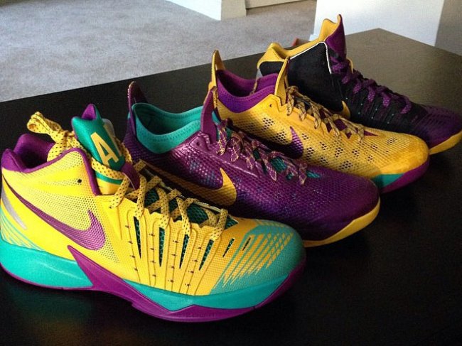 WNBA新赛季开战在即,这也意味着为新赛季准备的专属战靴也正临阵待命。洛杉矶火花队后卫Alana Beard就为我们提前送上专属于她的Nike I Get Buckets以及Crusader PE实物照。主客场双色I Get Buckets以及同样的双色Crusader,鞋款鞋身均有黄/紫/水蓝三色调出现以突显火花队元素。