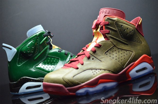 为了庆祝乔丹的首个 NBA 总冠军 23 周年,特意以冠军雪茄盒冠军香槟打造了这个 Air Jordan 6 冠军套装。同样向总冠军致敬,两个款式的采用了不同的材质打造鞋面,其中冠军香槟的细节部分还带有夜光效果。而冠军戒指造型的鞋带扣也颇具亮点。