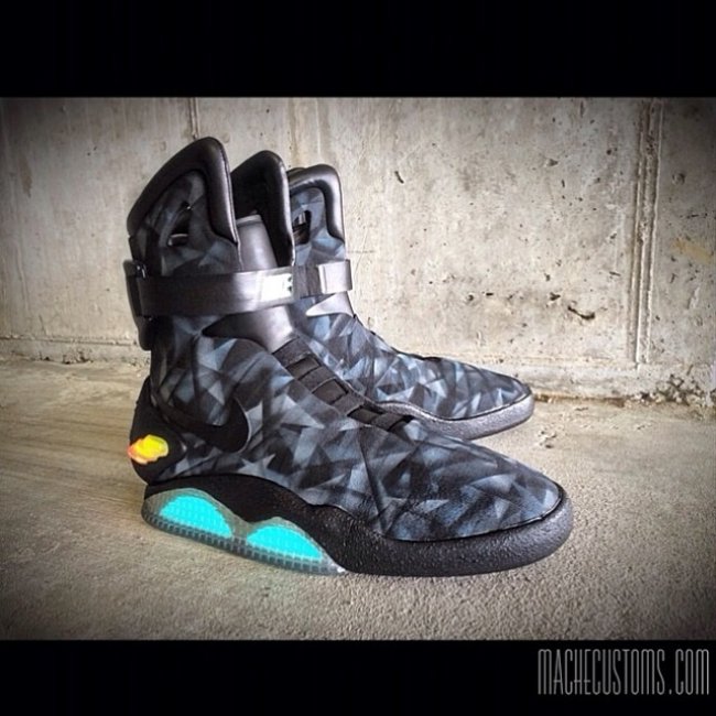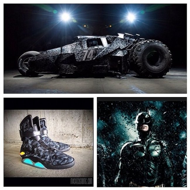 球鞋定制大神Mache再出新作,将蝙蝠侠的蝙蝠战车为设计灵感,运用在Nike Air Mag之上。Nike Air Mag原有的灰色鞋身被黑灰的几何菱状纹路所装饰,搭配黑灰色调装饰与中底的LED灯,令Nike Air Mag焕发出全新的面貌。