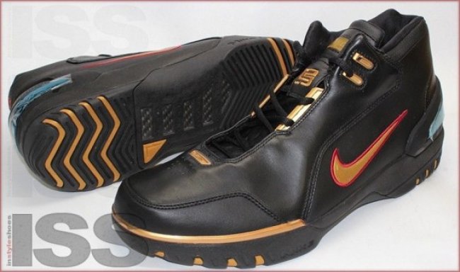 如果Nike LeBron系列开始复刻,死忠们必定会翘首企盼曾经未发售的各款球员版本能够量产市售,眼前这双黑金色Nike Air Zoom Generation PE或许就是候选之一。黑色皮革制作鞋身,细节点缀金色并以少许红色装饰,后跟带有曾经的背号23刺绣。