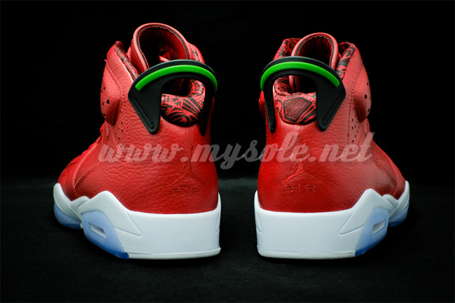 既然是 Air Jordan 6 鞋型的 23 周年,那 Jordan Brand 必然要把各种纪念贯彻到底。这款 Air Jordan 6 "MVP/History of Jordan" 是为了乔丹的光辉历程而打造,黑红相间的内衬上带有数字、字母和图案,似乎是记录历史的画卷。整体采用了红色的皮质打造鞋面,搭配白色中底和蓝水晶大底。 货号:694091-625