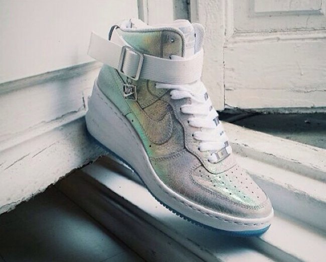 坡跟设计已然成为Nike Sportswear女性鞋款的时尚,近日网上曝光将再添一款WMNS Lunar Force 1 Sky High,鞋身保留Air Force 1的经典设计轮廓,中底改为坡跟Lunarlon。鞋款整体色调素雅,适合女生们夏季着用搭配。