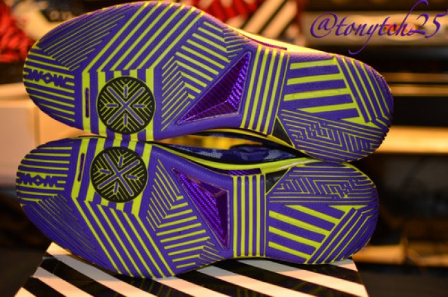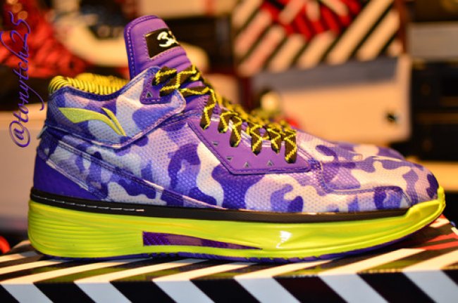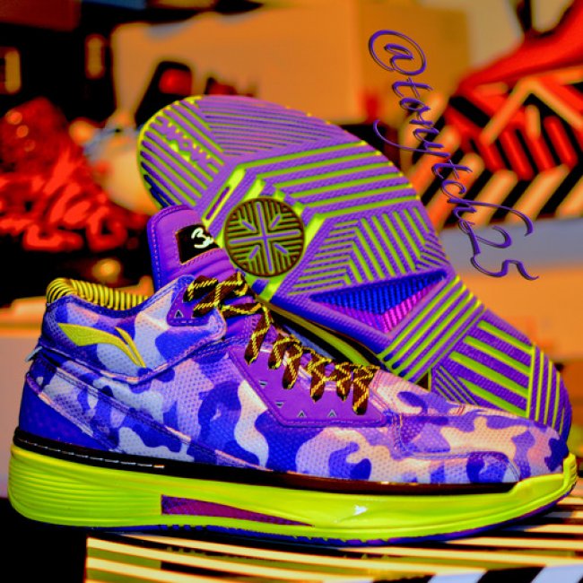 李宁韦德之道 2 曝光全新“Grape Ape“版本,深浅不一的紫色迷彩图案妆点尼龙网面鞋面,并搭配醒目的荧光色中底,令鞋款极具视觉冲击。韦德之道 2 标志性的眩晕迷彩内衬则使用荧光黄/黑色调呈现,极为亮眼。后跟的皮质装饰内印有Grape Ape字样。