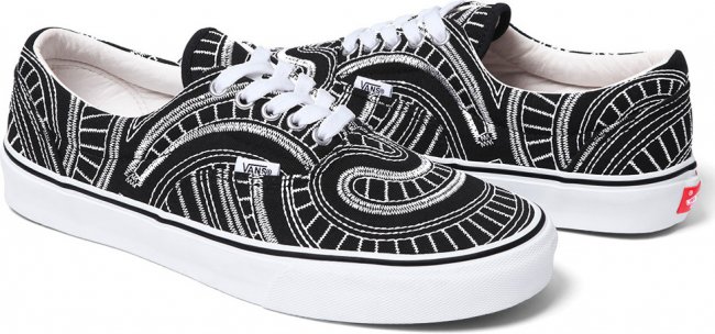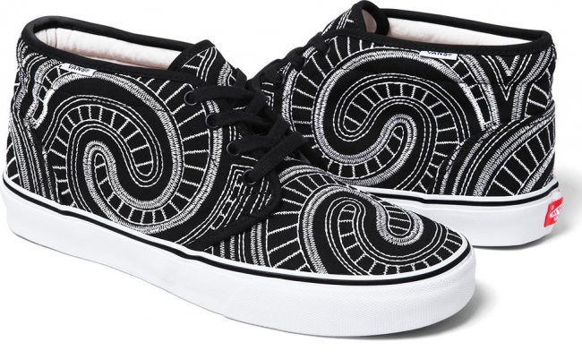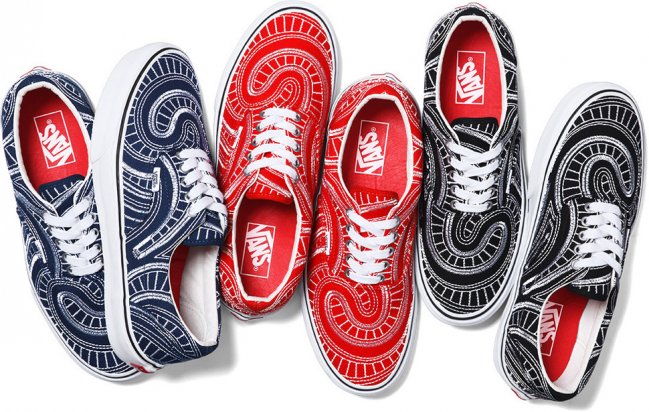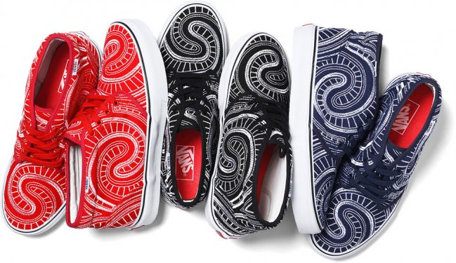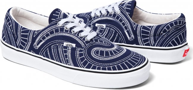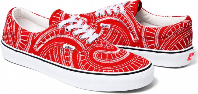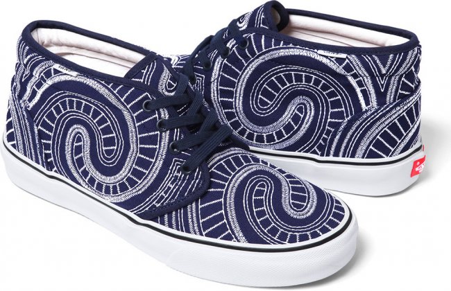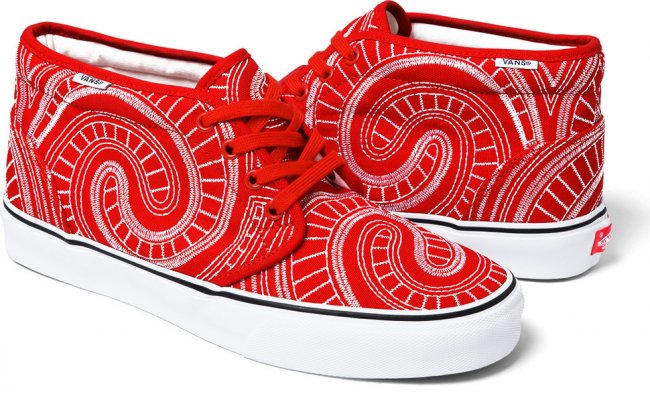 随着夏季的临近,纽约街头潮牌Supreme再度携手Vans于近日推出全新2014春夏季联名鞋款系列。该系列由Vans Era及Vans Chukka两双经典鞋款组成,设计师在红、黑、蓝纯色呈现的帆布鞋面采用独特的白色车线勾勒,令鞋面上充满极具特色的漩涡状装饰,搭配白色皮革内衬与硫化大底,令人极易深刻。据悉,Supreme x Vans全新2014春夏季联名鞋款系列将于5月15日陆续在各大Supreme门店发售。