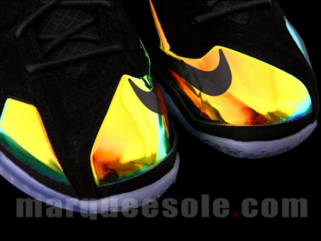 这款 LeBron 11 EXT QS “Kings Crown” 采用麂皮结合金黄色金属质感的 Hyperposite 材质打造鞋身,King James 的荣耀和王者霸气一览无余。 蓝色水晶大底则犹如王者皇冠上的蓝宝石,在黑色鞋面和金属材质的陪衬下闪闪发亮。 货号:677693-001 ‘