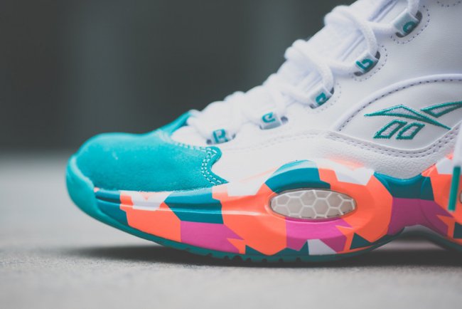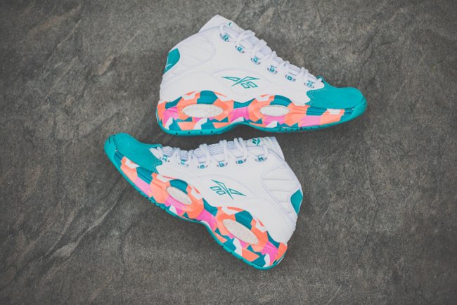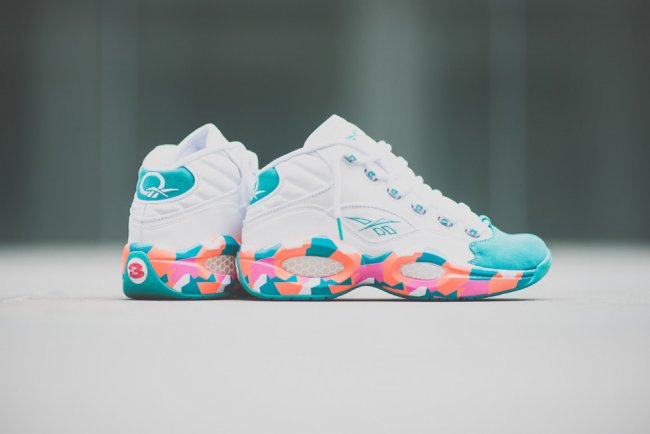 这款曾由Allen Iverson亲着曝光的Reebok Question Mid “White Noise”即将上市,这款全新配色的 Reebok Question Mid采用白色鞋身搭配薄荷绿色调鞋头与后跟麂皮装饰,橙、粉色调装饰于中底组成极具特色的迷彩图案。