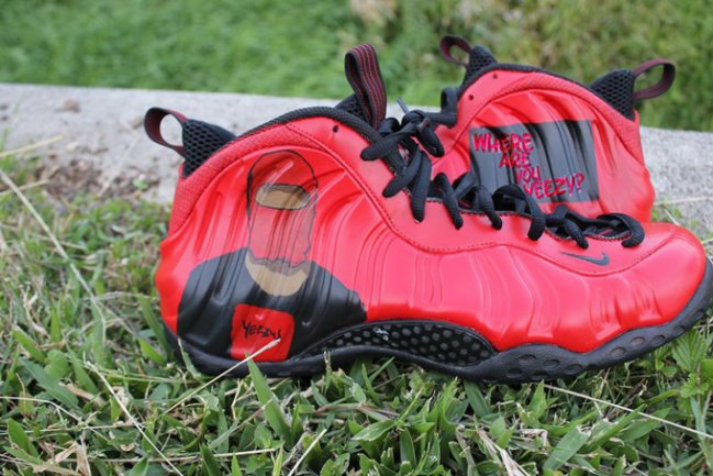 日前一位名为 Paradise Customz 的球鞋定制爱好者推出了一款 Nike Air Foamposite One “Yeezus” 私人定制作品,鞋款以红色为基底,分别在右脚鞋身上绘制上了一个 Kanye “Yeezus” West 人像;左脚鞋身上则印制了 “Where are you Yeezy?” 字样,最后,两只鞋的后跟位置均加载上了金色的 “Yeezus” Logo。