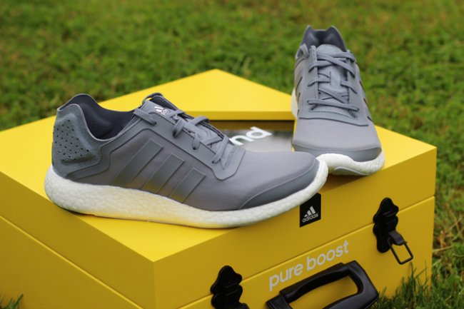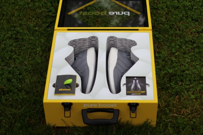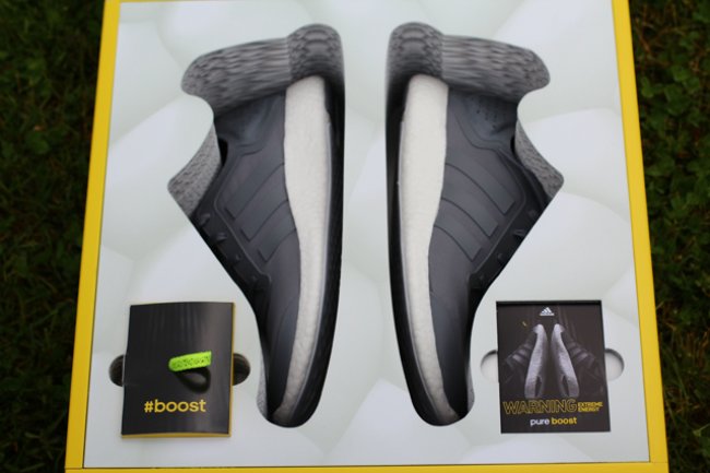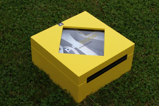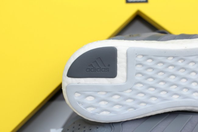 以高性能以及舒适感为出发点而特别打造的adidas Pure Boost现已正式上架,近日网上则曝光疑似为媒体宣传专用的非市售特别包装版本。透过黄色鞋盒的盒盖可以看到灰色adidas Pure Boost鞋款,随鞋还附上一对荧光色泼墨鞋带。