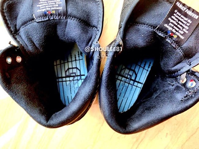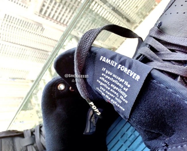 鞋带扣采用了多彩颜色,在深色鞋身的陪衬中显得格外抢眼。鞋舌内侧的鞋标上带有 “Family Forever” 字样。