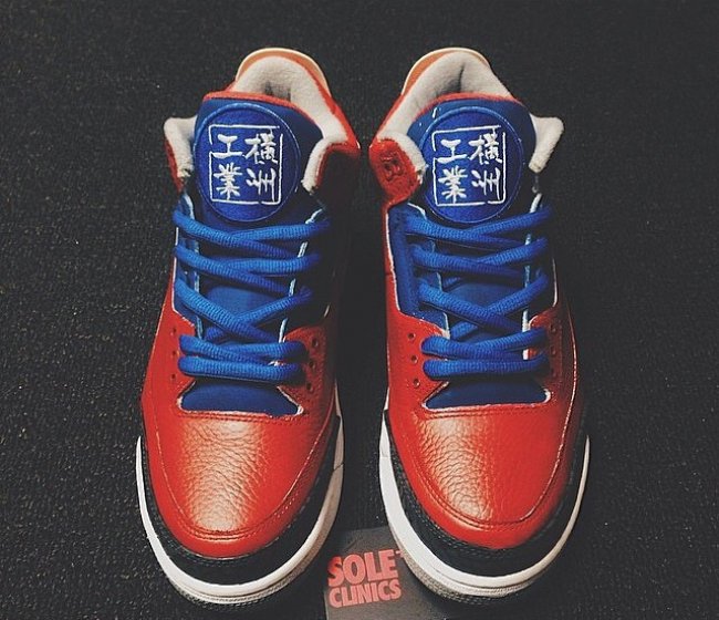 由香港艺人余文乐领衔的横洲工业篮球队在内地也有着很高的知名度,日前阿乐又在个人 Instagram 上晒出了一款由球鞋定制方 Soleclinics 专为自己球队打造的 Air Jordan 3 私人定制作品。鞋款以蓝红两色为主基调,辅以白色中底以及内衬,而鞋舌上则添加了极为显眼的“横洲工业”字样,以此凸显主题!