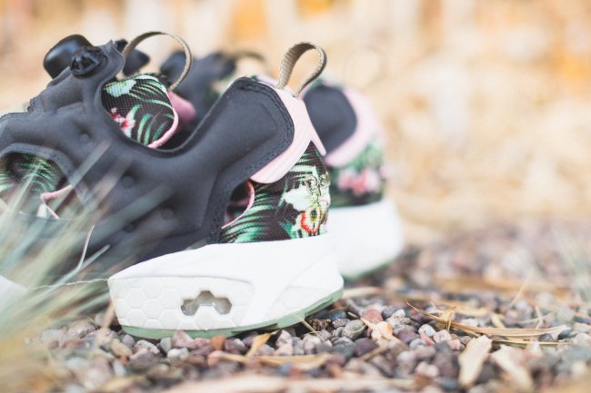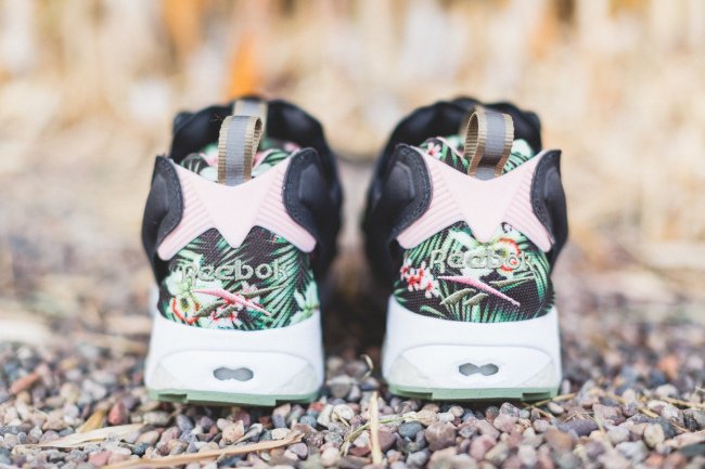 这双 Instapump Fury 在设计上则是以充满阳光热情的夏威夷风格作为出发,犹如穿上了热带印花 T-Shirt,结合黑色人工材质与棕色毛绒麂皮,融入粉色调增加跳跃感,再搭配相呼应的印花鞋垫和白色 Hexalite 气垫中底而成。