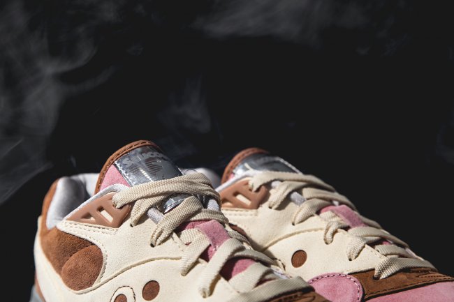 Extra Butter x Saucony “Space Snack” Shadow Master 联名鞋款选用宇航员所食用的太空食物为设计灵感。鞋款使用粉色与棕色麂皮打造鞋身,搭配白棕鞋底,鞋舌上印有独特的银色反光宇航员 Logo。这款 Extra Butter x Saucony Shadow Master “Space Snack” 将于配套服饰一同在 Extra Butter 率先发售,现带来这款球鞋的高清实物图片。