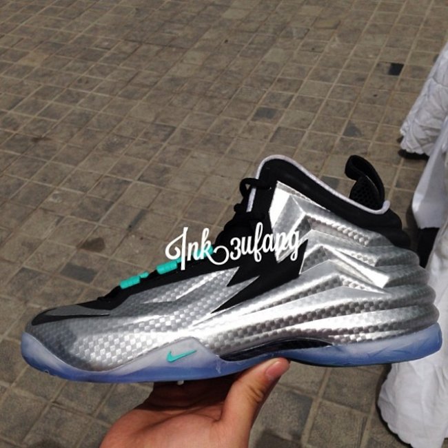 Nike Chuck Posite 在北京的鞋世 Kicksmart 上曝光。颇有视觉冲击力的鞋身设计,银色的 Foamposite 材质鞋面以金属光泽的碳纤维纹路呈现,搭配蓝水晶大底。更多的相关信息我们将持续关注。