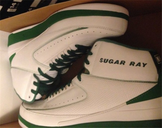 近日,一款以雷·阿伦波士顿时期生涯为灵感打造的 Air Jordan 2 在网络上曝光,鞋款以凯尔特人经典的白绿配色呈现,并在鞋帮上绣有雷·阿伦的绰号“Sugar Ray”,整体效果简洁大方。