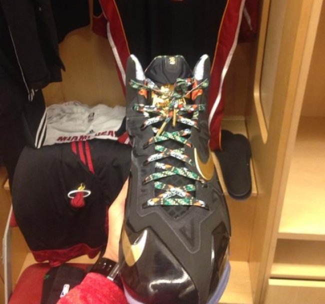 热火和步行者迎来东部决赛第五场,詹姆斯在抵达球场时穿着了 LeBron 11 "Watch The Throne"。这款球鞋已经曝光多次,但没有市售的信息。 为庆贺 Jay Z 和 Kanye West 的 Watch the Throne 巡演,Nike LeBron 9 推出了此款 Watch The Throne 配色,而 LeBron 11 是否会市售此配色,依然是未知数。 詹姆斯到场视频