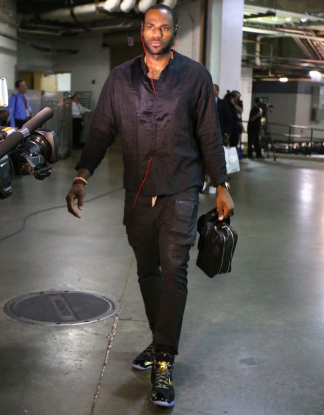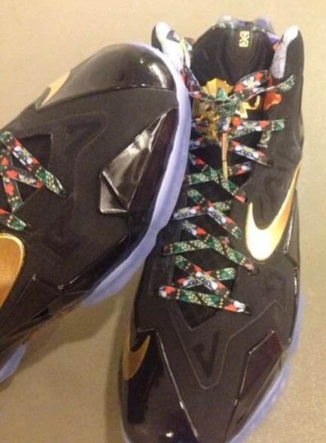 季后赛东部决赛第五战,虽然LeBron James相较于前几场状态低迷,没能帮助热火在第五战拿下东部冠军,但赛前亮相时却是绝对的关注焦点。LeBron James一身黑色着装,脚上穿着的是至今仍鲜有曝光的极罕有“Watch the Throne”LeBron 11 PE,经过FBI调查俄勒冈总部球鞋失窃(非法倒卖)事件,相信日后此类PE出现在收藏家手中的机会也会更困难。