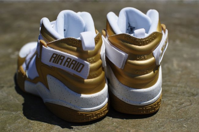 经典街头篮球鞋Nike Air Raid推出全新“Metallic Gold”版本,鞋身以简洁的白色为主色调,搭配白色泼墨中底及内衬,醒目的金色点缀在鞋面、大底、鞋面Logo点缀之上,低调而奢华。Nike Air Rai全新“Metallic Gold”版本,将于本周末正式在各大指定店铺上市,货号:642330-700,售价:135美元。