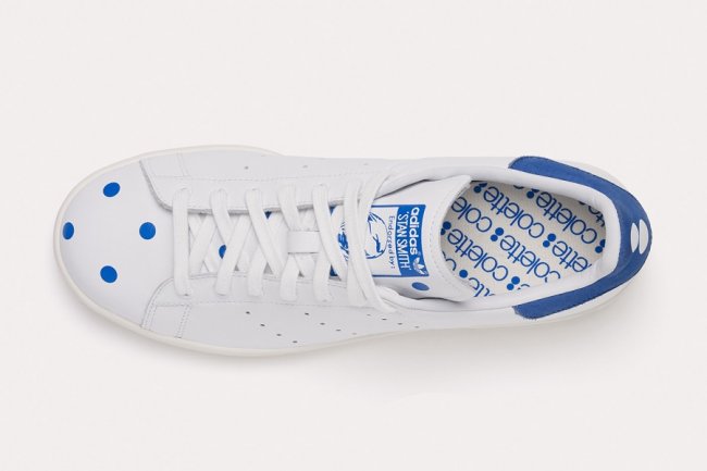 在联名预告发布约一周之后,adidas终于公布了与来自法国的colette 共同打造的联名款Stan Smith真容。该鞋款以简洁的白色为主色调,搭配微带泛黄的做旧中底。鞋身细节使用colette标志性的蓝色呈现,点缀在鞋头、后跟等处。鞋垫上印满蓝色的colette字样,鞋款整体简洁清新。据悉这款colette x adidas Stan Smith将于7月5日正式在各大指定店铺上市,喜欢的朋友不妨留意一下。