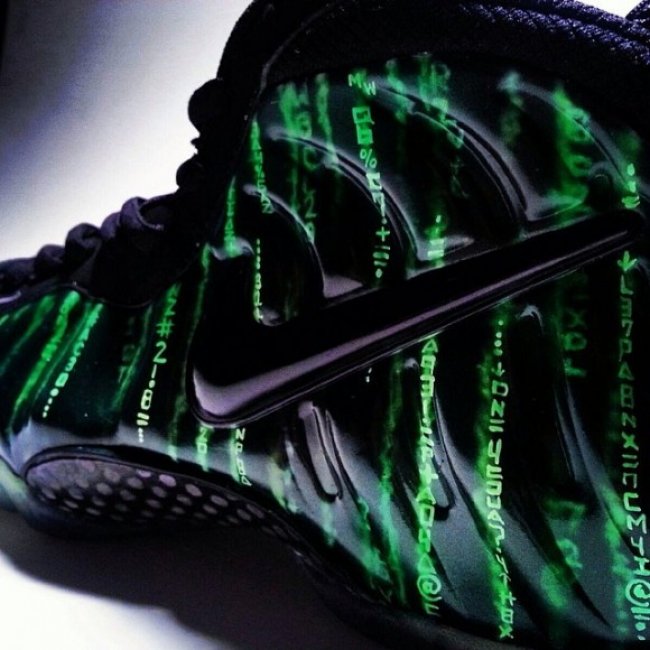 Smooth Tip Production选择《黑客帝国》作为定制主题,以Nike Air Foamposite Pro鞋款为模板打造全新作品。鞋款foamposite鞋身以墨绿色为底色,鞋面以荧光绿色绘写神秘编码,整体风格与电影经典画面如出一辙,后跟提环字体以及swoosh则以夜光效果为定制作品增添神秘感。