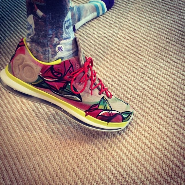正在洛杉矶享受休赛期的Kevin Durant今日在自己的社交网络上曝光了一款全新配色的Nike KD 6 Elite,棕色鞋面采用一体化设计,鞋面上辅以Delano Brown标志性的绘画图案。醒目的黄色点缀在内衬及中底装饰之上,并搭配全掌Zoom Max气垫和红色鞋带,令鞋款拥有不俗的外观。