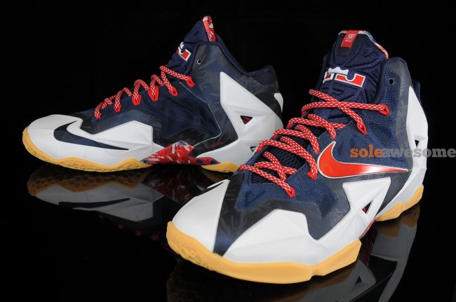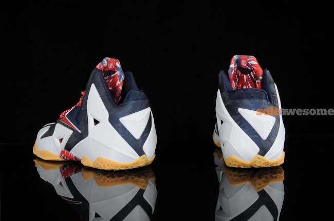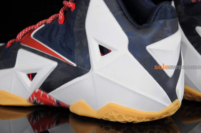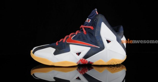 眼前这款散发着浓重美国格调的Nike LeBron XI据悉是为迎接即将到来的独立日而特别打造的"Independence Day"配色。海军蓝Hyperfuse鞋面搭配白色Hyperposite鞋身装饰,红色的Swoosh、鞋带等细节点缀其中令鞋款如同美国星条旗一般。海军蓝暗纹及黄色大底的加入,则让整双鞋款变得更加特别。据悉这款Nike LeBron XI "Independence Day"配色将于7月4日独立日当天正式上市,售价:200美元,货号:616175-164。