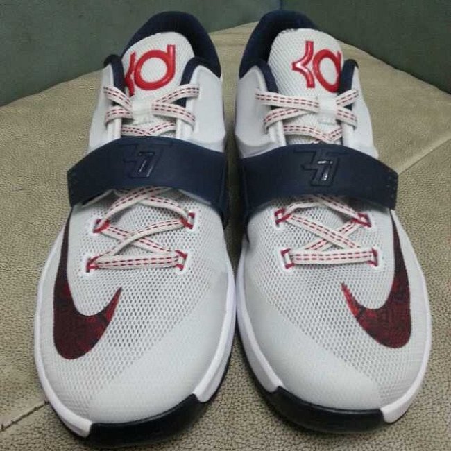 杜兰特的第七代战靴已经曝光了实物图片,并且很快就将上市于大家见面。 眼前这两双 GS 女款球鞋分别采用水绿粉和美国国家队配色打造,其中的美国队配色将于 6 月 28 日发售,男款也将同时发售。 KD7 延续了低帮的设计,魔术贴也再次回归,而男款球鞋则搭载了可视化的 Zoom 气垫。