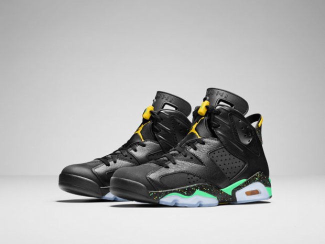 以主办国巴西为配色灵感,Jordan Brand 为庆祝 FIFA 世界杯开幕而特别呈上 Brazil Pack。套装包含一双 Air Jordan 6 以及一双 CP3.VII AE,均以黑色作为鞋身主色调辅以绿色以及黄色装饰,再配上冰蓝色水晶大底。原定 6 月 21 日发售,现将提前于 6 月 12 日限量登陆全球店铺。 货号:688447-920 发售日期:6 月 12 日 发售价:$500
