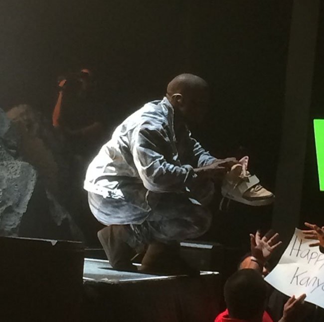 如今提到Kanye West,或许不少人会先想到他为某位粉丝亲签了一双仿冒的红色十月,而现在或许Kanye能够更好地入眠,因为就在上周末的XGames表演中,他为前排某为观众的Air Yeezy签上了名字,而且这一次,这双Air Yeezy可是货真价实的真鞋。